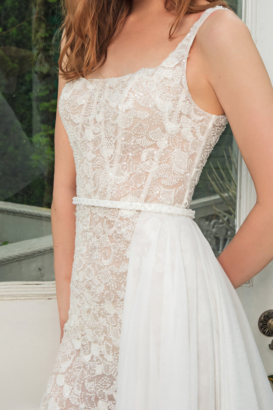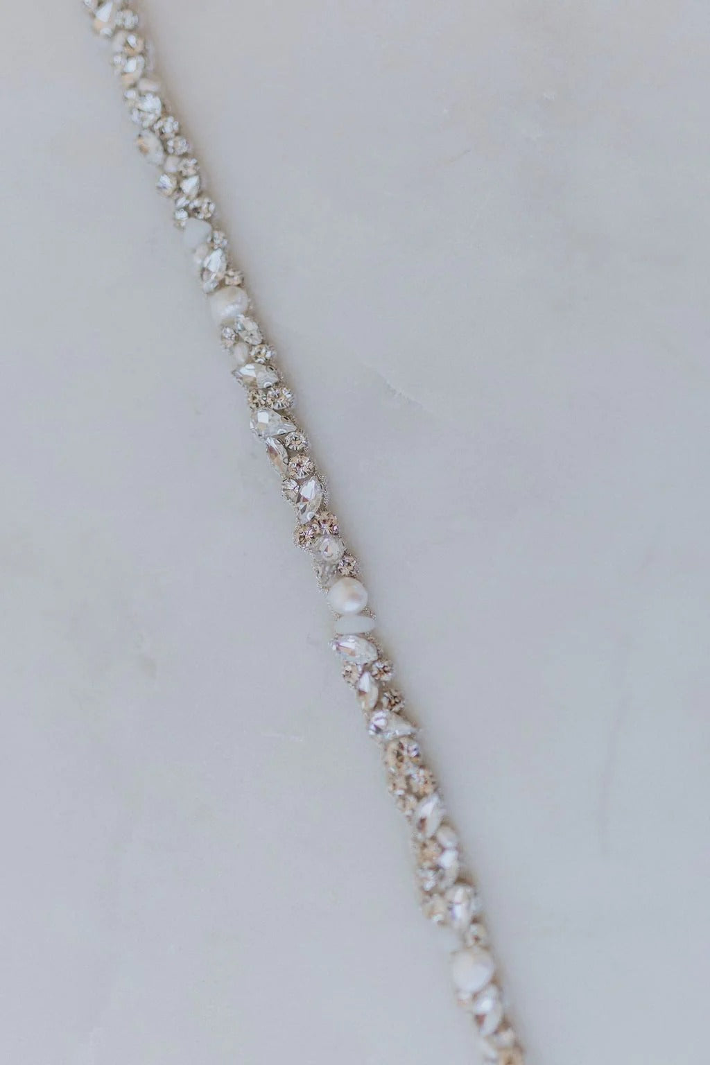Discover our beautifully crafted bridal belts adorned with crystals and pearls to cinch your waist with a hint of sparkle, elegant gloves that range from sleek satin to intricate lace for a touch of glamour, and customizable straps that add both support and style to any gown.