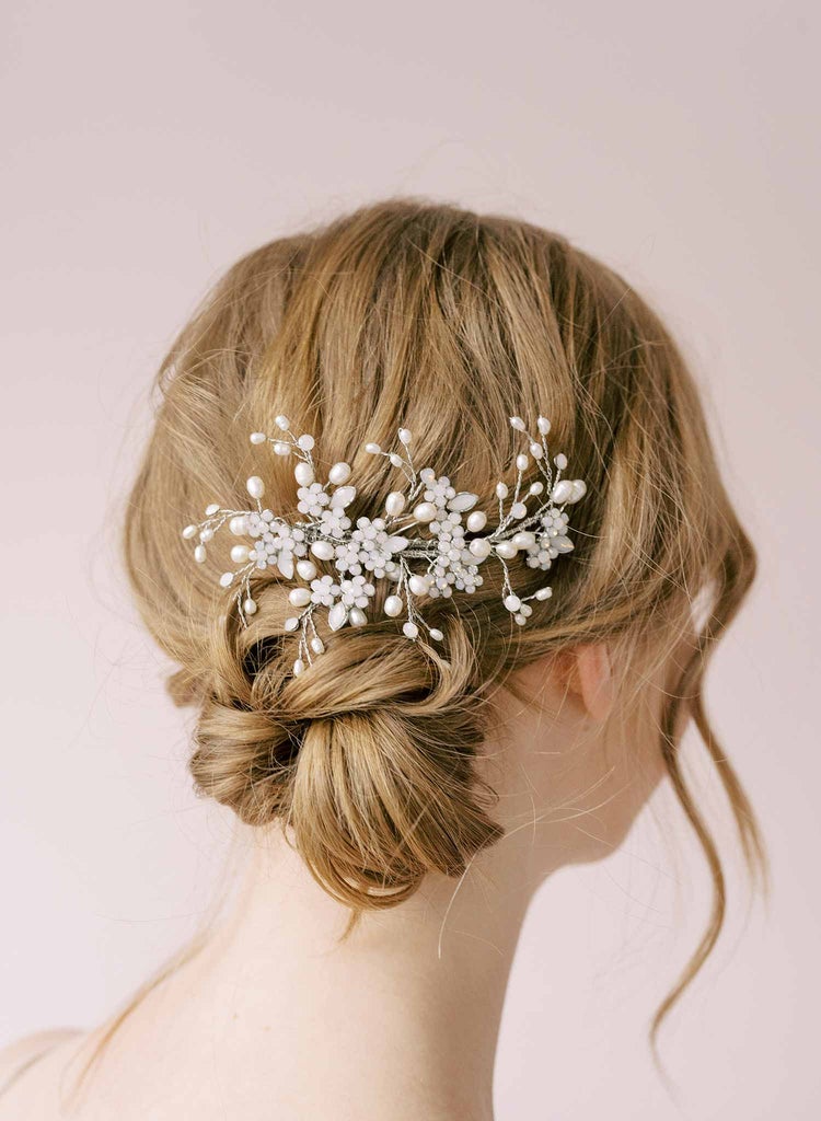 Compliment your bridal hairstyle with our lovely selection of hairpieces, including combs, pins, vines, and crowns. Whether you envision a classic updo or a flowing romantic style, our exquisite hair accessories promise to enhance your beauty on your special day.