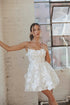 Our mini bridal dress Blair - the perfect little white dress for all your bridal events. Whether it's engagement photos, bridal shower, bachelorette party, or wedding farewell brunch, its incredible 3D floral design and corset back will make you feel elegant and supported.
