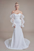 Elevate your special day with Em, a stunning wedding dress designed by Vagabond. Show off your beauty in this fit and flare crepe gown with a scoop neckline bustier and mermaid shaped skirt. The optional, removable plisse tulle statement billow sleeves add a touch of drama and elegance. Make a statement and feel like a work of art in Em.