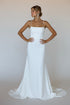 Elevate your wedding day in the Isla dress by Vagabond. This modern fit and flare gown is crafted from matte stretch crepe fabric with a boned bodice, giving structure to the look. The minimalist straps and ruched train add an elegant touch while the square neckline and button details add sophistication.